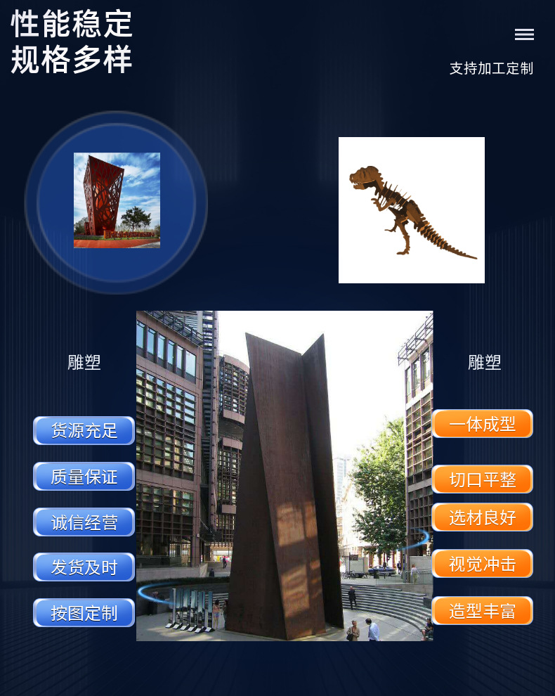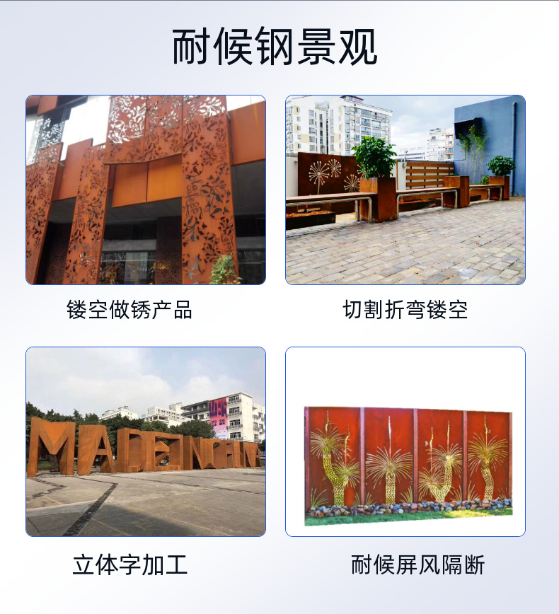 カスタム耐候性鋼板製品、屋外装飾用厚鋼板、カーテンウォール加工、錆び加工、卸売鋼板、錆板