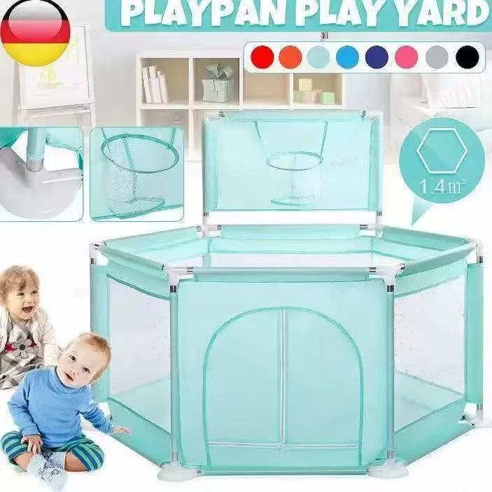 普通的儿童游戏围栏是安装管子的那段布跟网直接缝纫,我家是添加了一段布料让护栏的牢固质量大大提高。