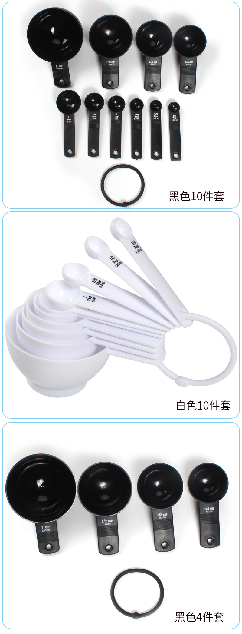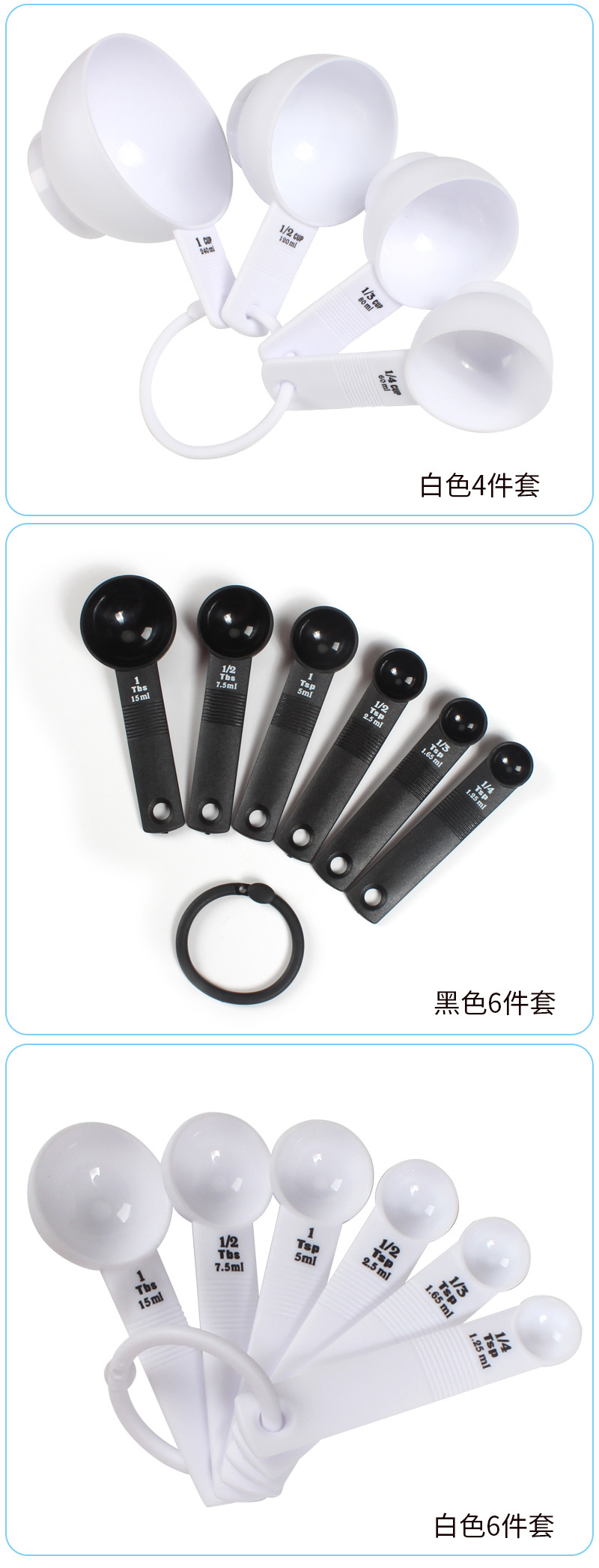 仕様 計量スプーン計量カップ10点セット-黒,計量スプーン計量カップ10点セット-ホワイト,計量カップ4点セット-ブラック,計量カップ4点セット-ホワイト,計量スプーン6点セット-黒,計量スプーン6点セット-ホワイト