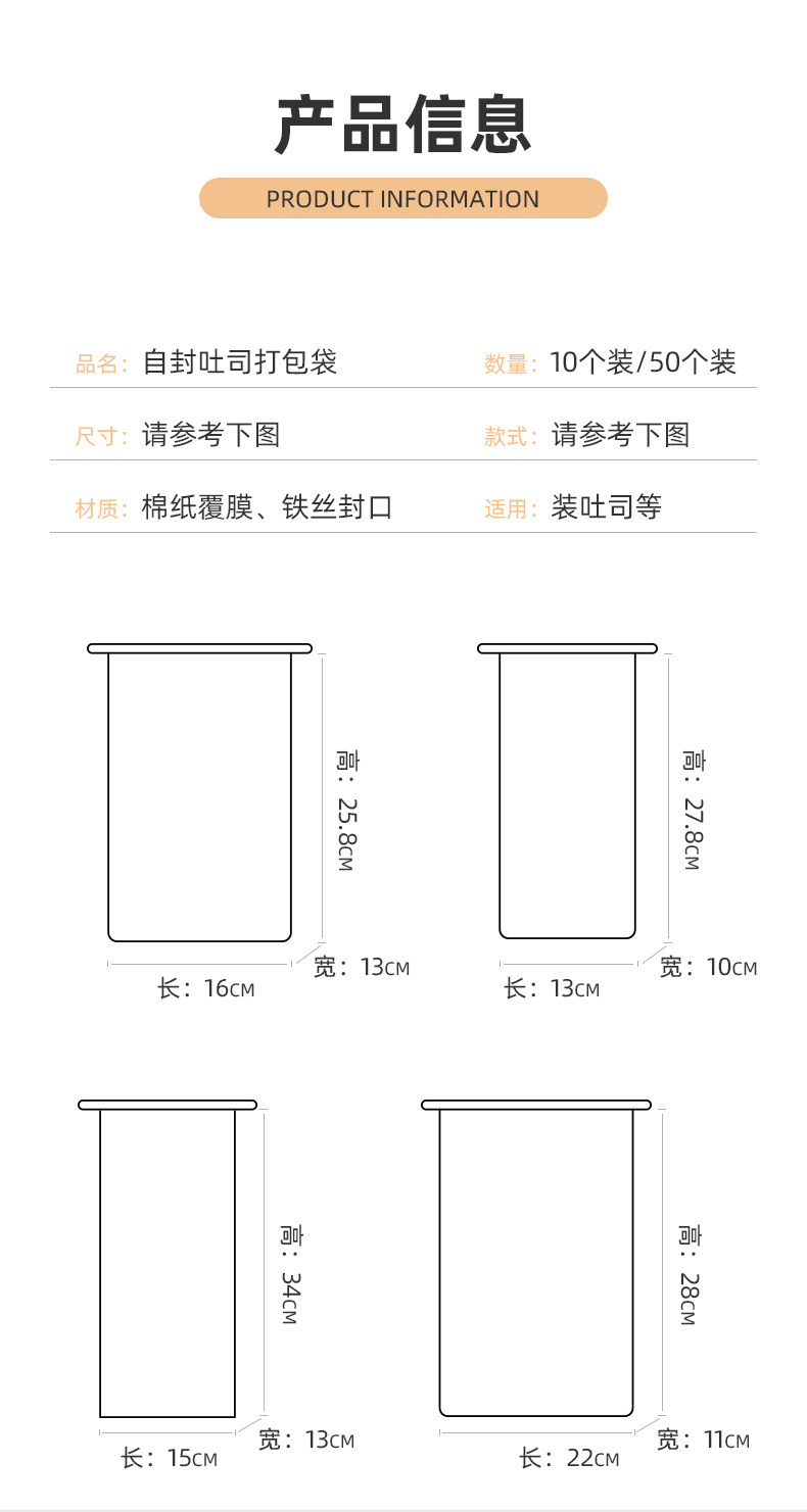 トーストパン包装袋欧包封口自封スライス綿紙トースト袋450gグラム針金巻き縁大サイズ