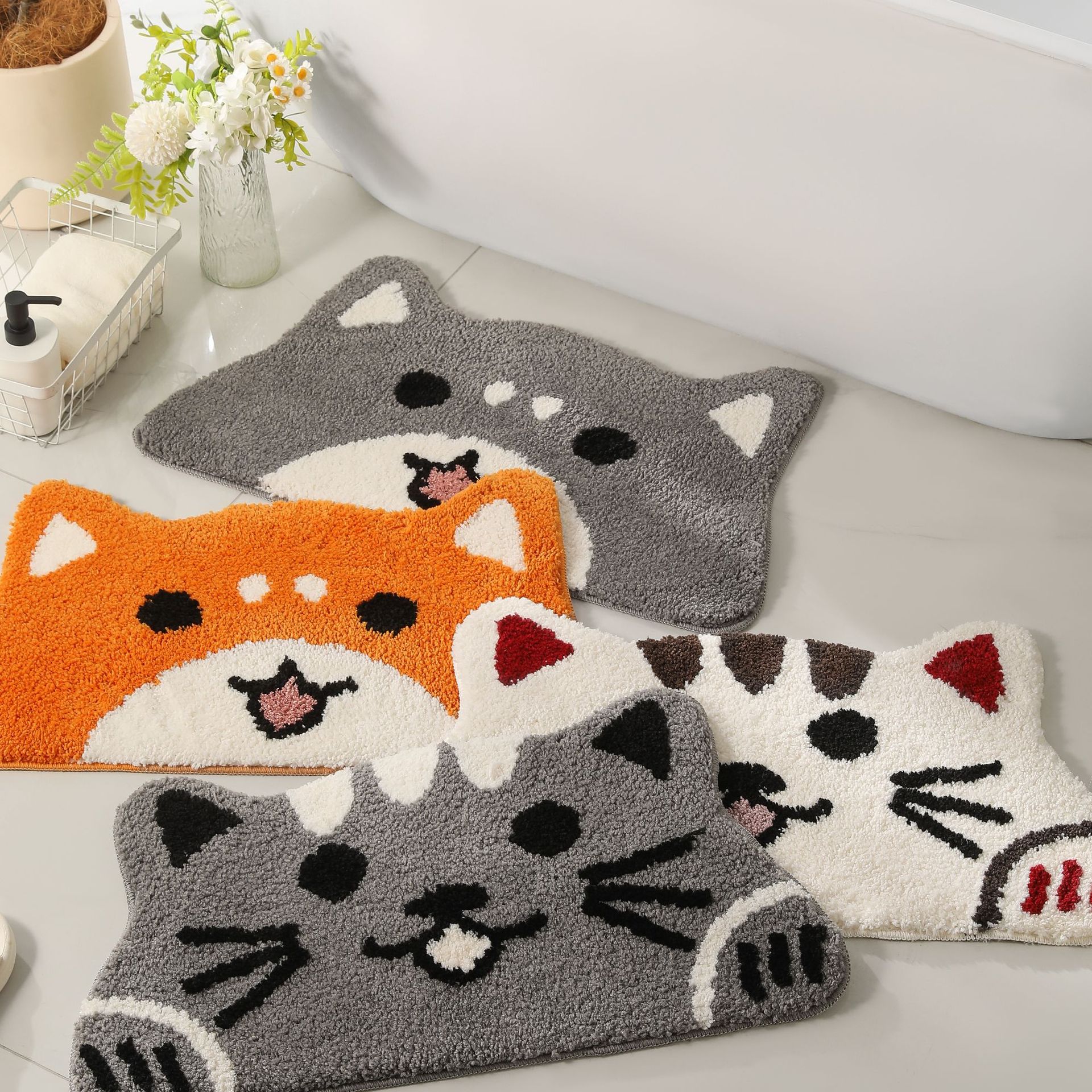 アマゾン浴室吸水マット漫画猫柄足元マット植毛トイレ吸水フロアマット滑り止め家庭用ドアマット