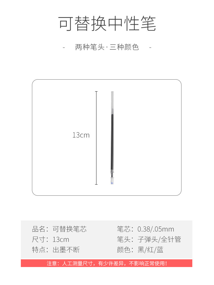 晨光笔芯替芯中性笔芯子弹头全针管按动笔芯黑色红色水性笔芯批发