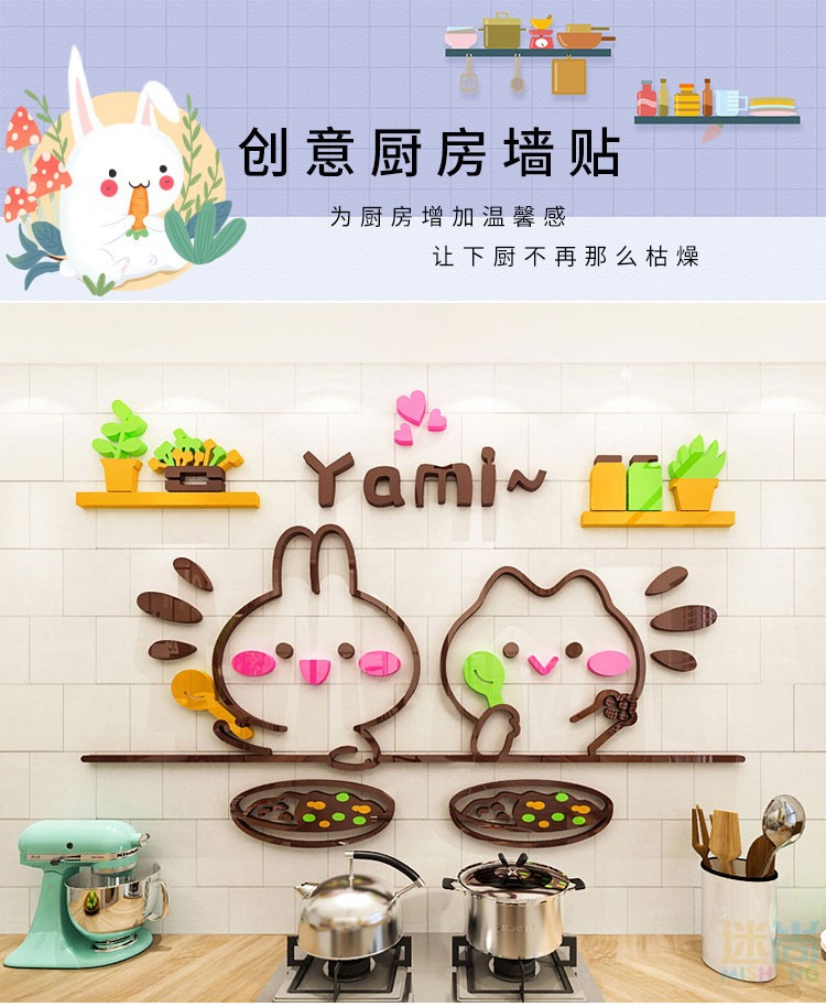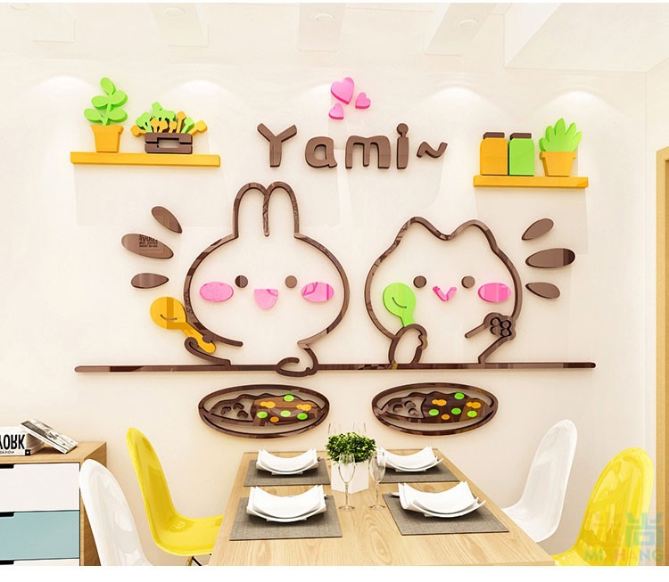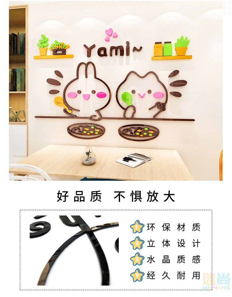 Ins北欧風創意貼り画客間レストラン壁面装飾3d立体壁シールミルクティー店厨房配置