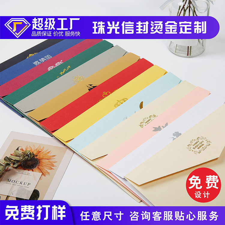 卸売の珠光紙箔押し封筒、カスタムメイドの厚手の牛革紙裏紙、カスタムメイドのカラフルなレトロな便箋、カスタムメイドの箔押し