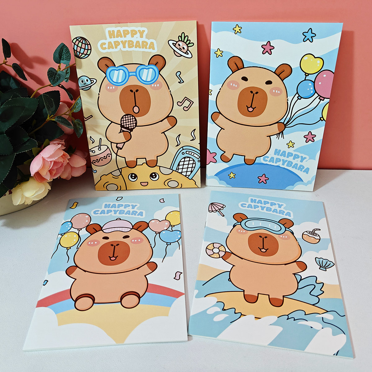 卡皮巴拉卡通笔记本A5横线本子小学生用骑马钉本可爱少女记事本批