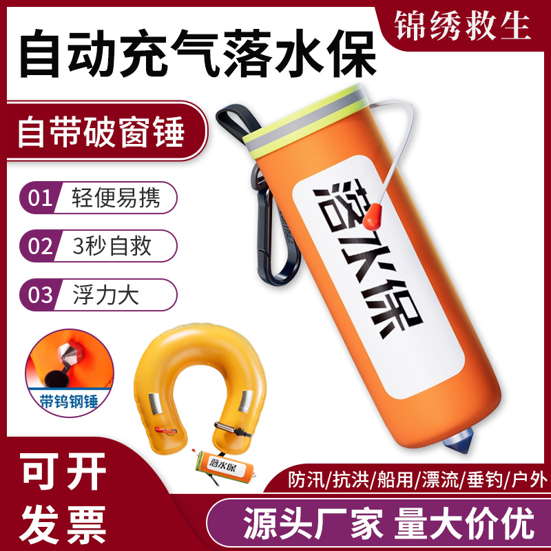 落水保車載救命ボート破れ窓ハンマー付き自動空気入り緊急救命ボート携帯水泳成人浮力リング