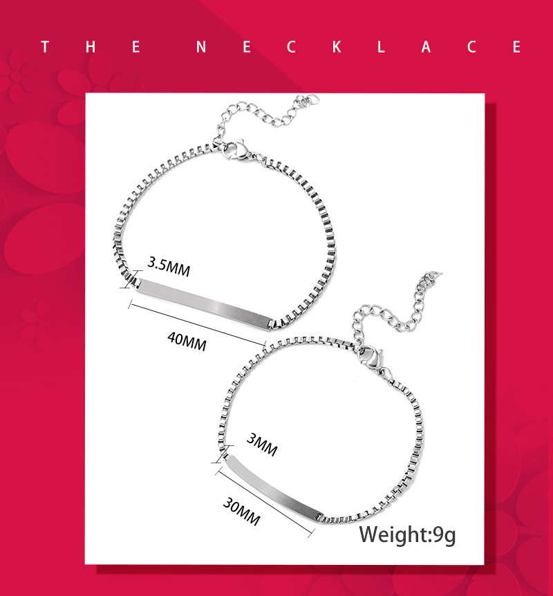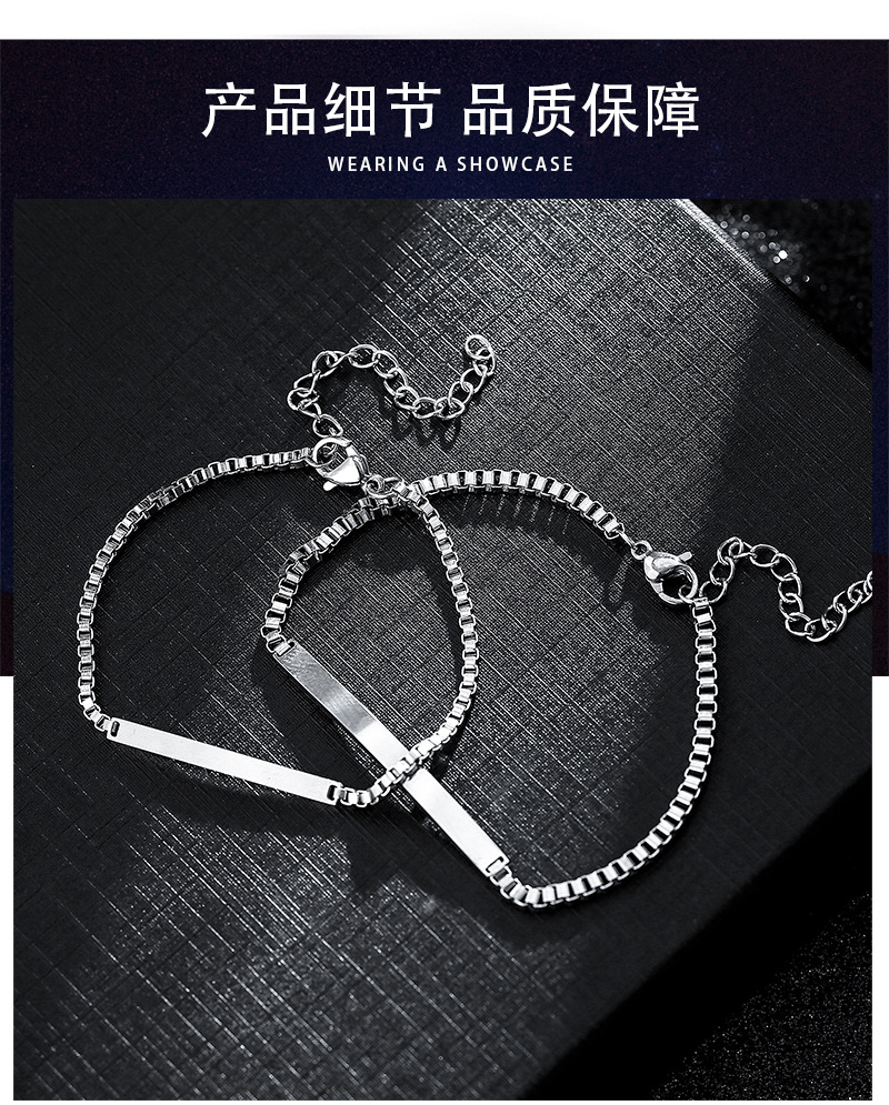 クロスボーダーファッションクリエイティブステッチブレスレットカップル親友ペアフラット彫刻可能なブレスレットメンズジュエリーチタン鋼アクセサリー