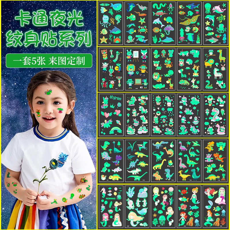 新しい子供の夜の光のタトゥーは漫画の夜の光の人鱼のユニコーンの恐竜の蛍光の透かしの入れ墨のステッカーを贴ります。