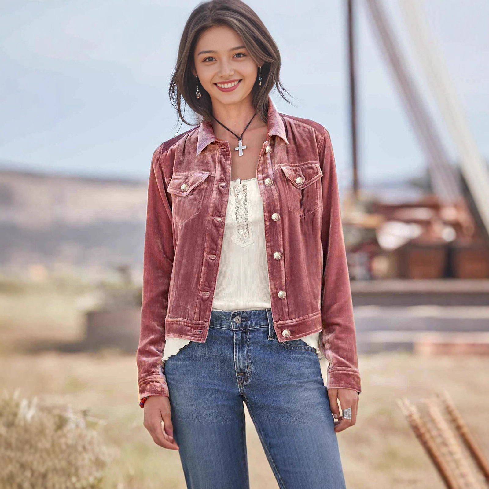 国境を越えたヨーロッパとアメリカのゴールドベルベットショートトップ女性のための 2025 独立ステーション新しいレトロコートシャツカジュアルジャケット