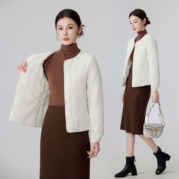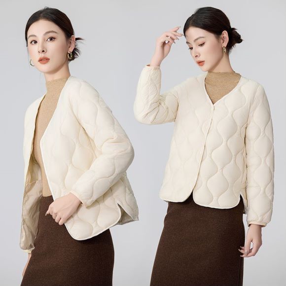 2025秋冬 薄手コットンジャケット レディース ショート丈 多用途 インナー 暖かい服 インナーライナー 丸首 密着型コットンジャケット スリムフィット