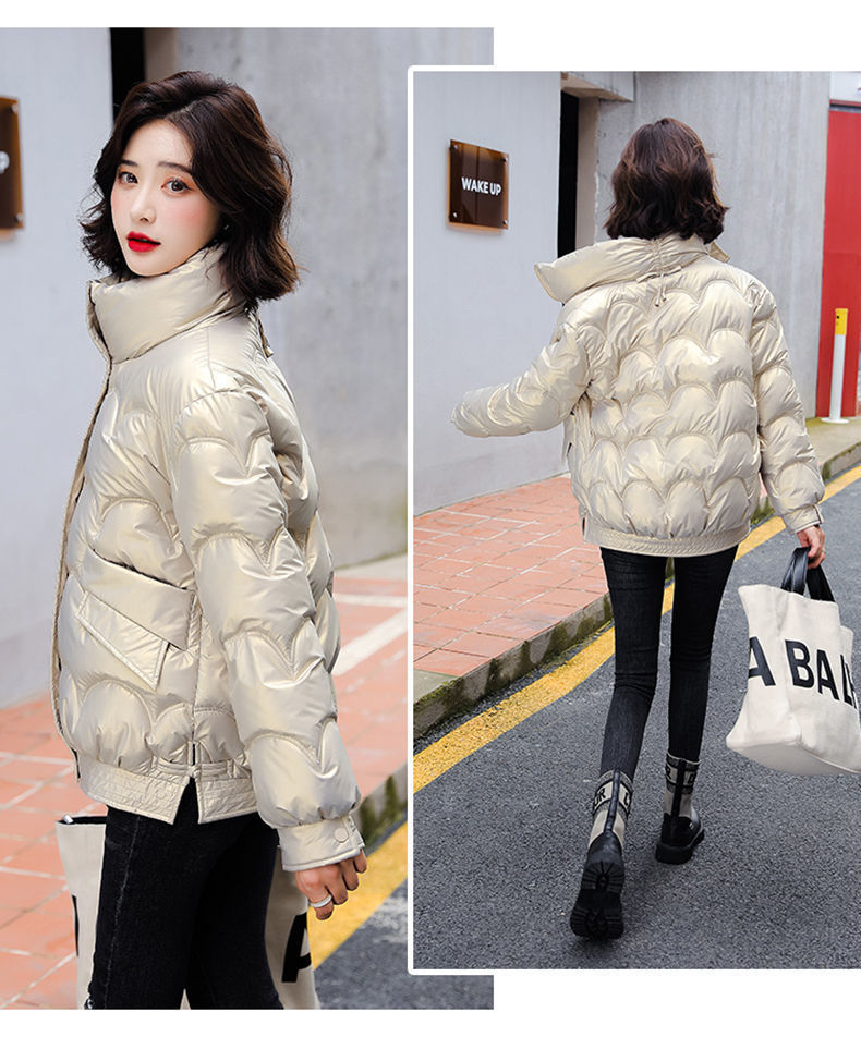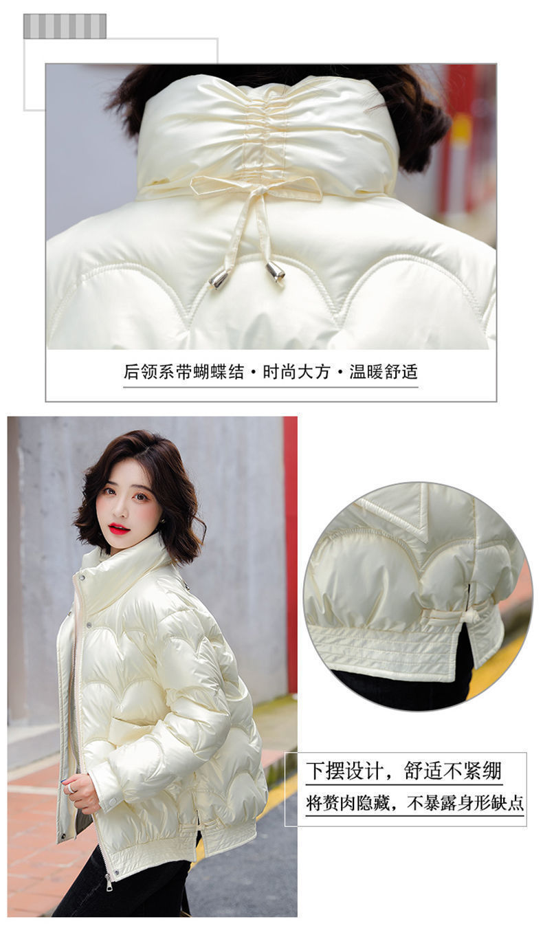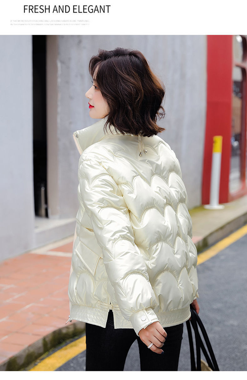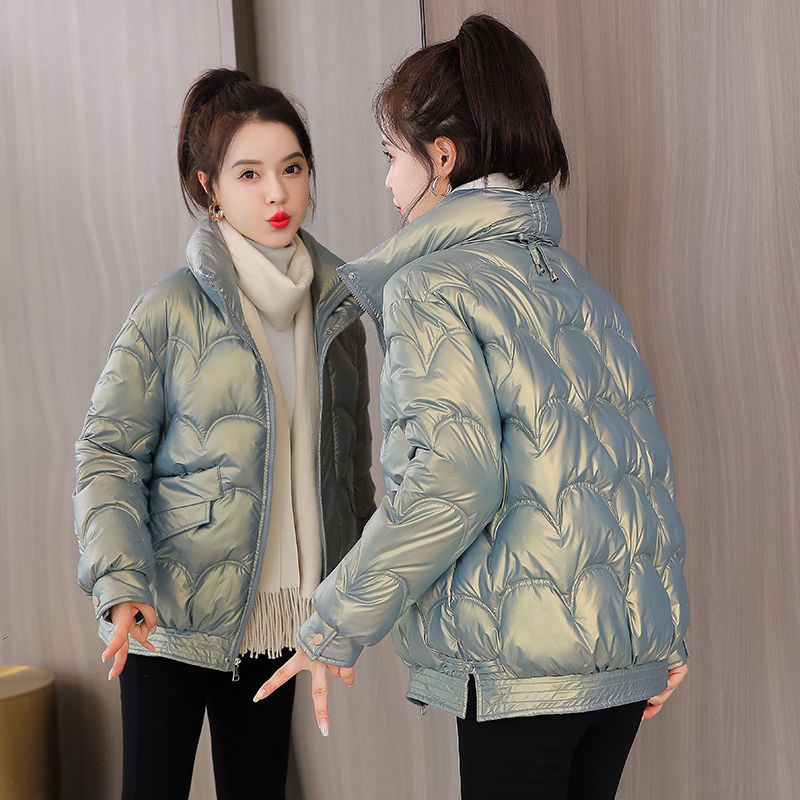 光沢のあるショート丈の綿服、女性用、ゆったりとした小柄な体型向け、インスタ映えする冬用軽量ジャケット、多用途でエレガントな雰囲気