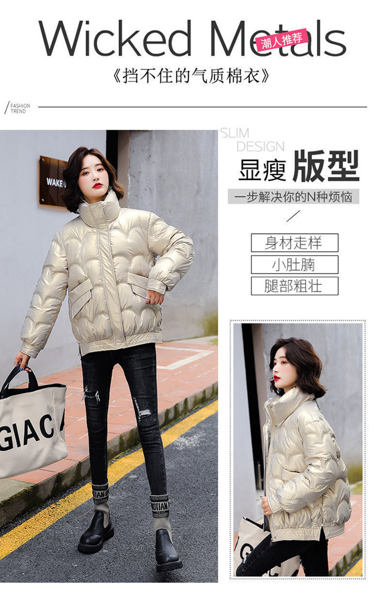 2025年冬新款韩版宽松棉衣小棉袄外套反季免洗亮面羽绒棉服女短款