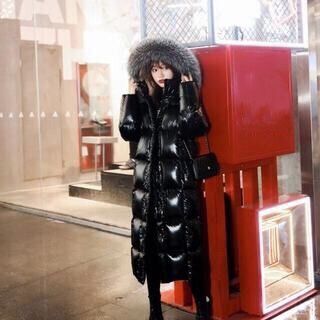 2025年レディース綿服新作ダウンコットンコート女性用膝丈ロングコート黒光沢超厚手ファー襟付きコットンジャケット