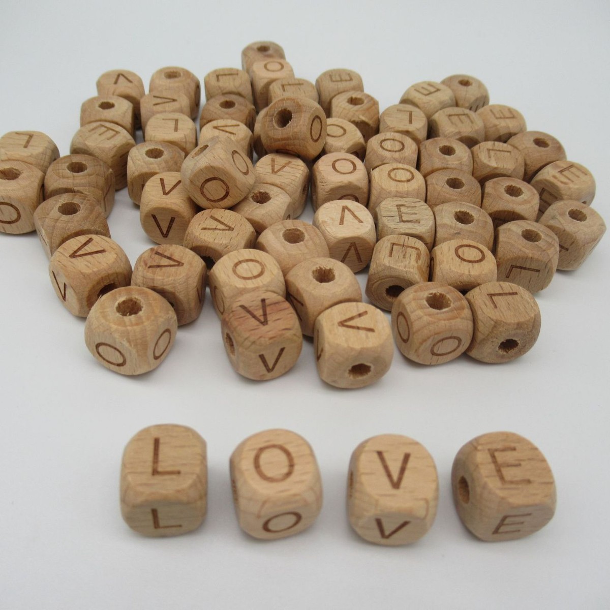 12mm方形自然原木色榉木方块珠26字母木珠儿童手工diy榉木珠子