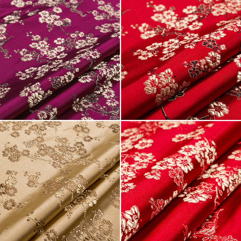 ポリエステル織錦サテン三五団梅竹模様カスタム生地レトロ包装チャイナドレス子供服生地メーカー