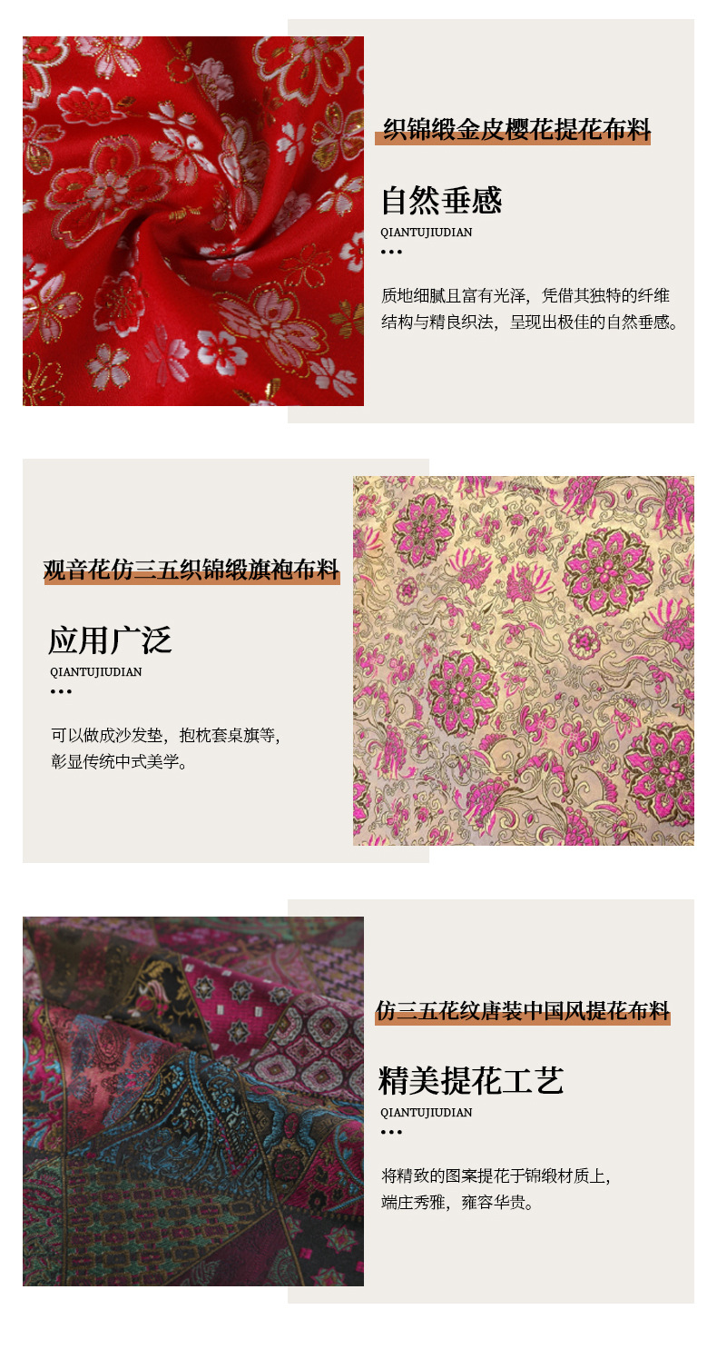 工場直送 大竹葉織錦ジャカードサテン 模古唐装旗袍生地 ペット服 クッション生地 シルク生地