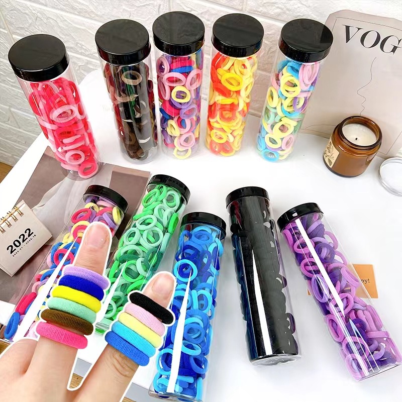 100本缶入りタオルリング髪ひも高弾力髪筋髪輪キャンディー色編みdiy手環髪ひも