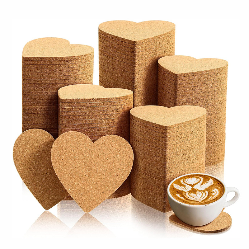 スポット卸売コルクコースター、特殊形状断熱プレースマット、ハート型と花型のコルク、吸水性、耐熱性、印刷可能なパターン