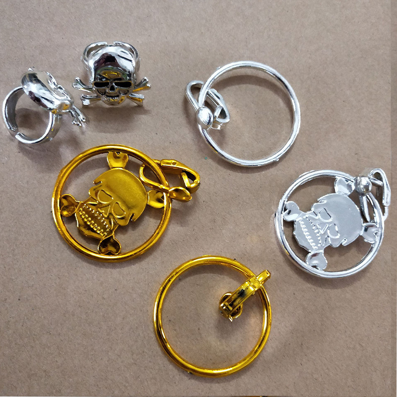 海賊のスカルのイヤリング海賊の指輪のプラスチックの指輪のハロウィーンの服装の装飾品の道具の指輪の小さいおもちゃ