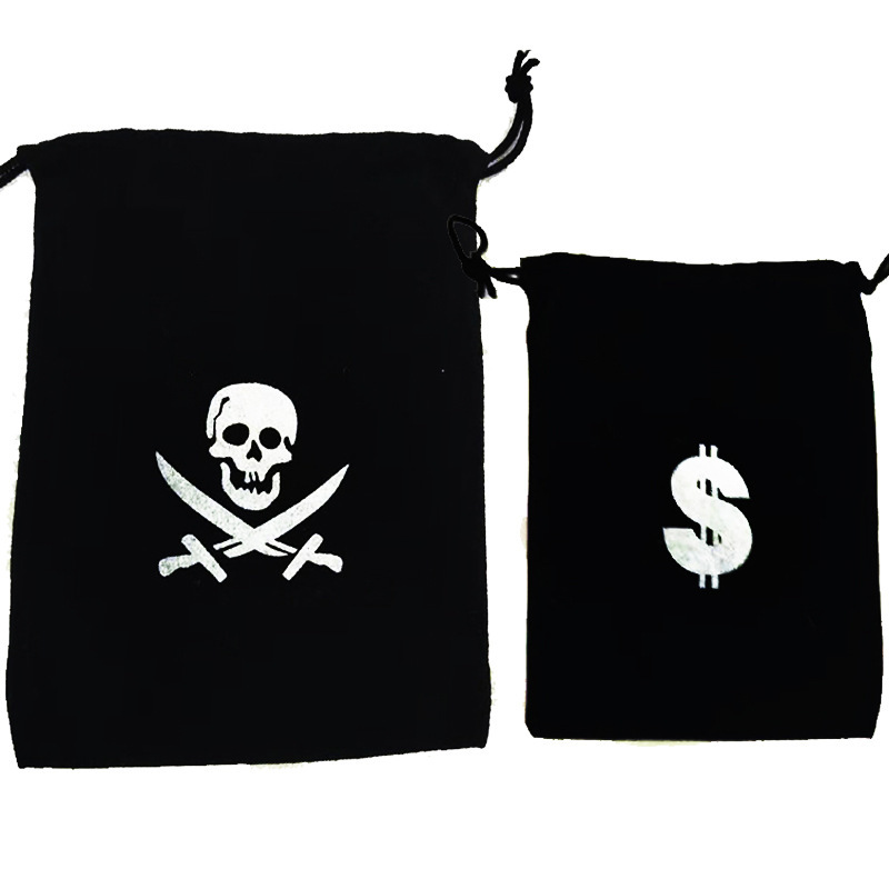 海賊のポケットの道具のスカルの頭のハロウィンの海賊のおもちゃのプラスチックの金貨の布袋の装飾品のメーカーは直接販売します。