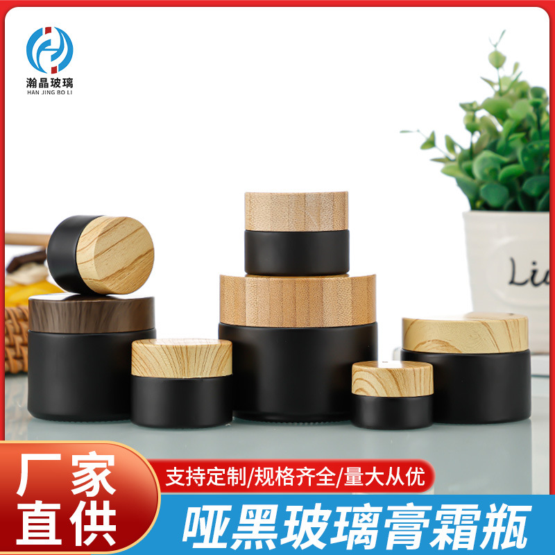 黒ガラスクリーム瓶クリーム瓶木目蓋化粧品アイクリーム分注瓶携帯旅行サンプル瓶