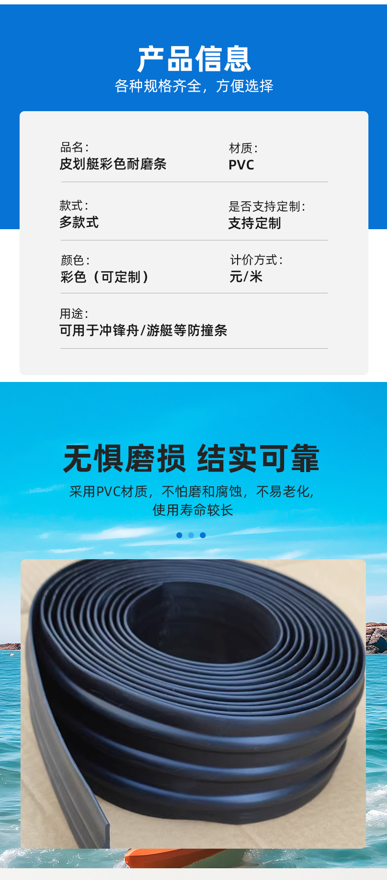 メーカー卸売PVCラフティングカヤック用耐衝撃保護ストリップ、潜水艦用耐衝撃保護ストリップ、耐摩耗性耐衝撃性チャージャーボート用ゴムストリップ