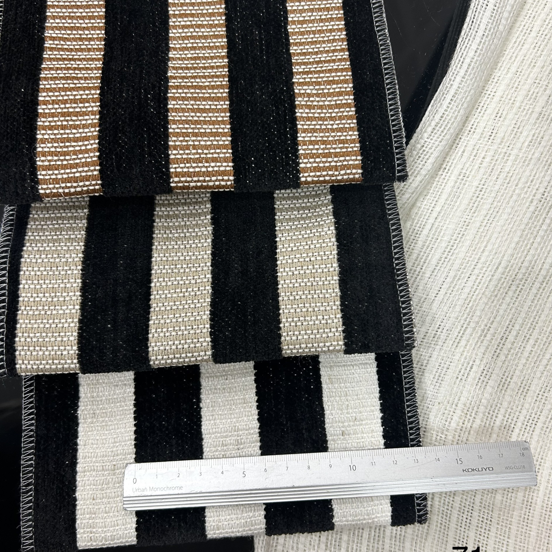 ドア幅280cmシェニールストライプ生地幅広ブラックゴールドブラックカカ白黒幅広ストライプジャカード両面生地