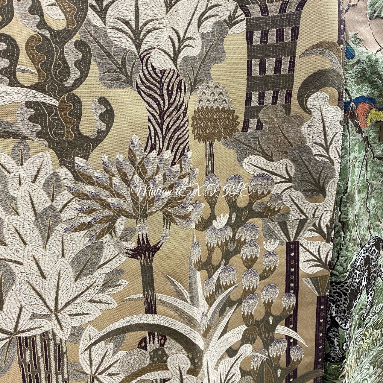 ドア幅290cm幅広シミュレーションシルクジャカード抽象幾何学模様見本室カーテン生地