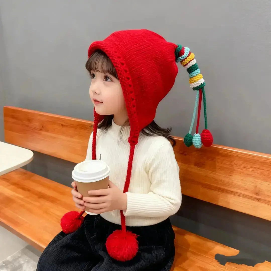 儿童秋冬帽子保暖彩虹针织帽男女宝宝冬天保暖洋气护耳加厚毛线帽