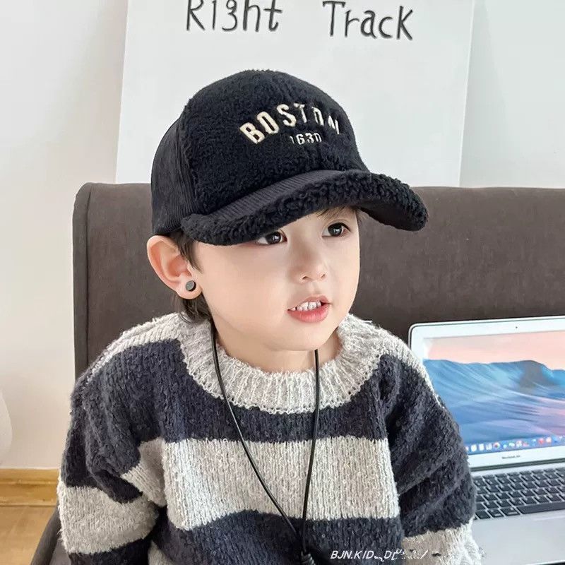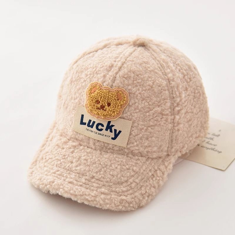 儿童帽子秋冬季宝宝鸭舌帽小孩可爱小熊加厚保暖仿羊羔绒帽棒球帽