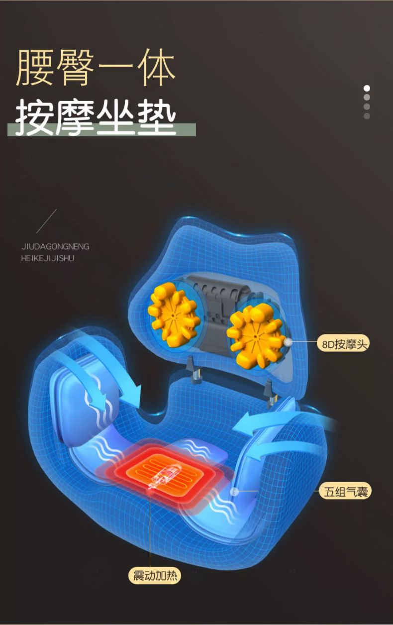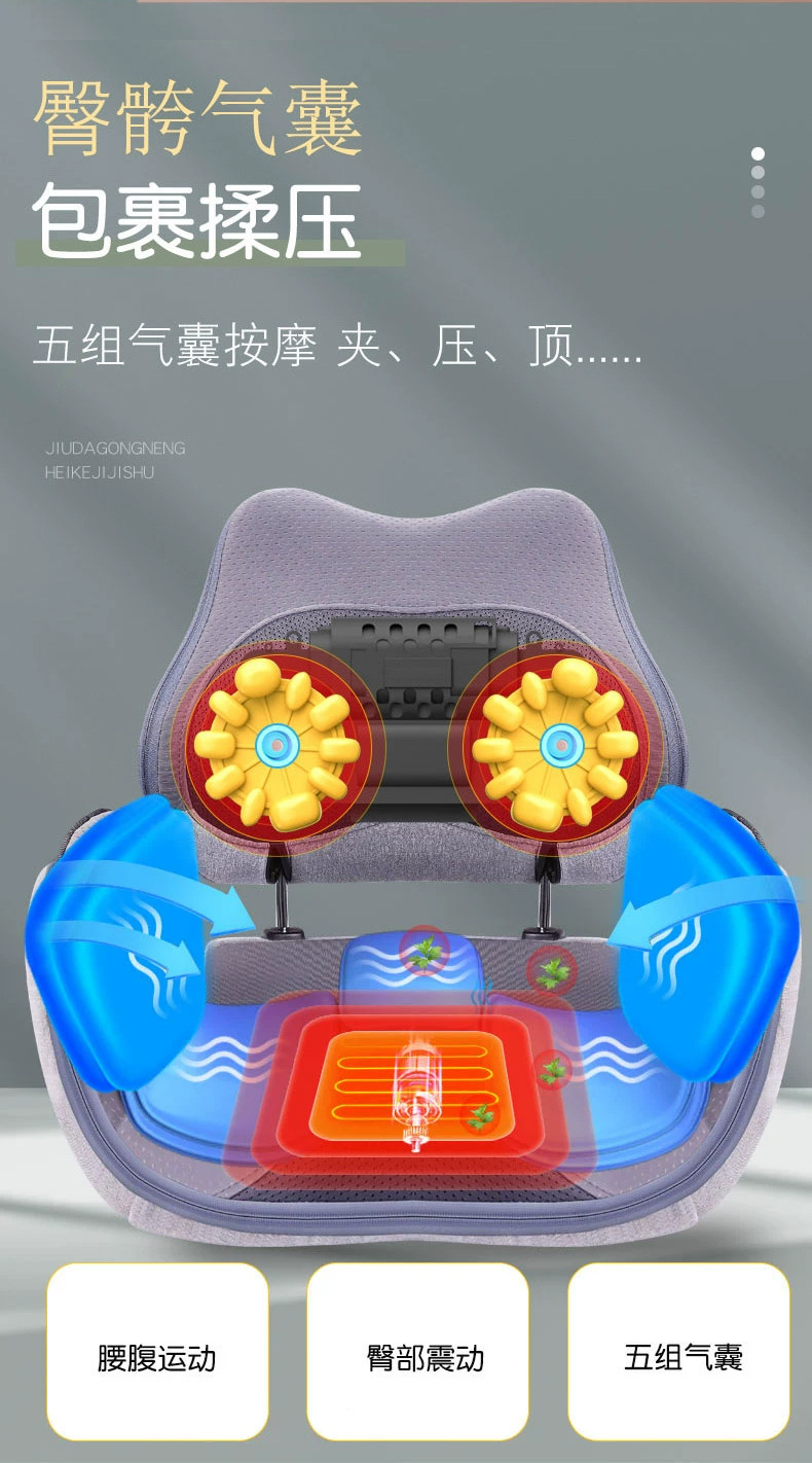 骨盤マッサージクッション腰椎マッサージ多機能家庭用折り畳み揉み振動エアバッグ加熱電動クッション