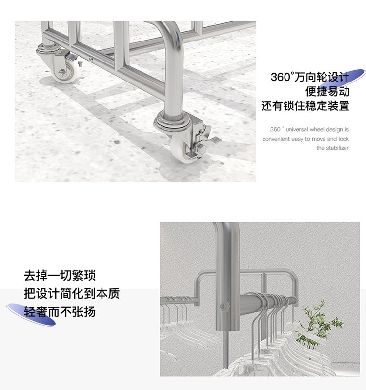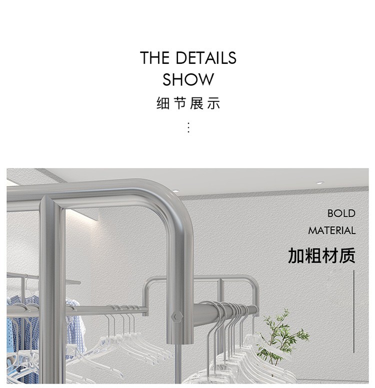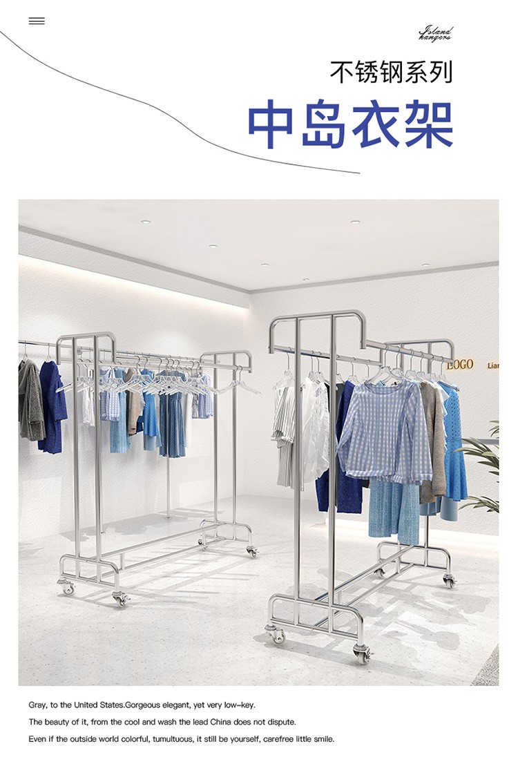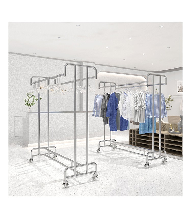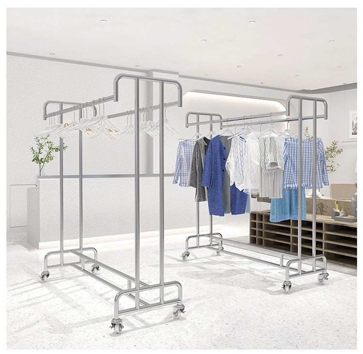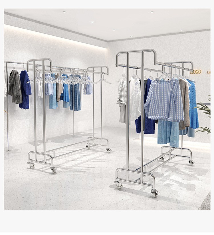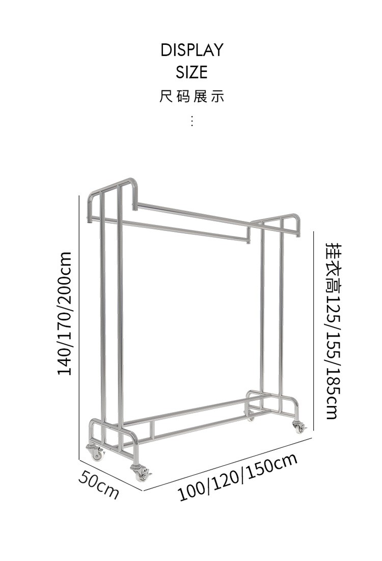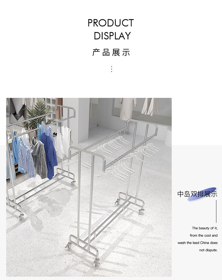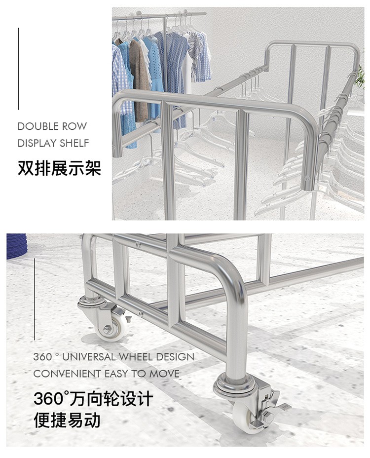 洋服店ステンレス展示棚二重棒二重列中島掛けハンガーシンプル男性婦人服陳列棚