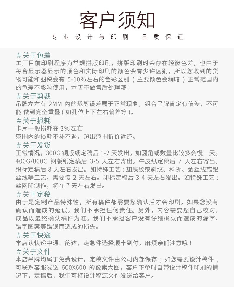 新型の取り外し防止の使い捨てのブランドのデザインの個性の商標のラベルは注文してネットの赤い婦人服の札の高級感の吊りカードを注文します。