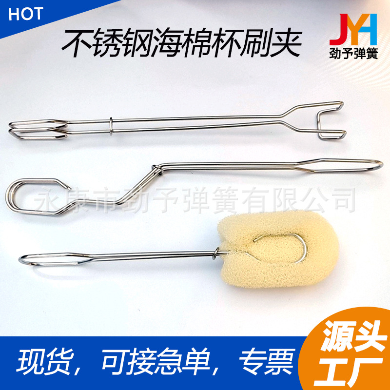 ステンレス製長柄カップ洗浄ブラシアーティファクトクリーニングブラシ哺乳瓶洗浄ロングカップブラシスポンジカップブラシスプリング