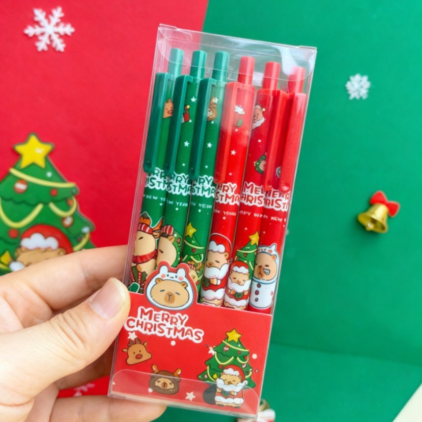 新款圣诞卡皮巴拉中性笔卡通学生0.5黑色水笔ST按动笔圣诞节文具