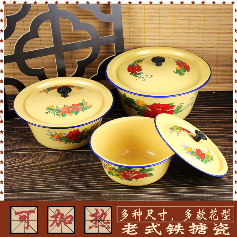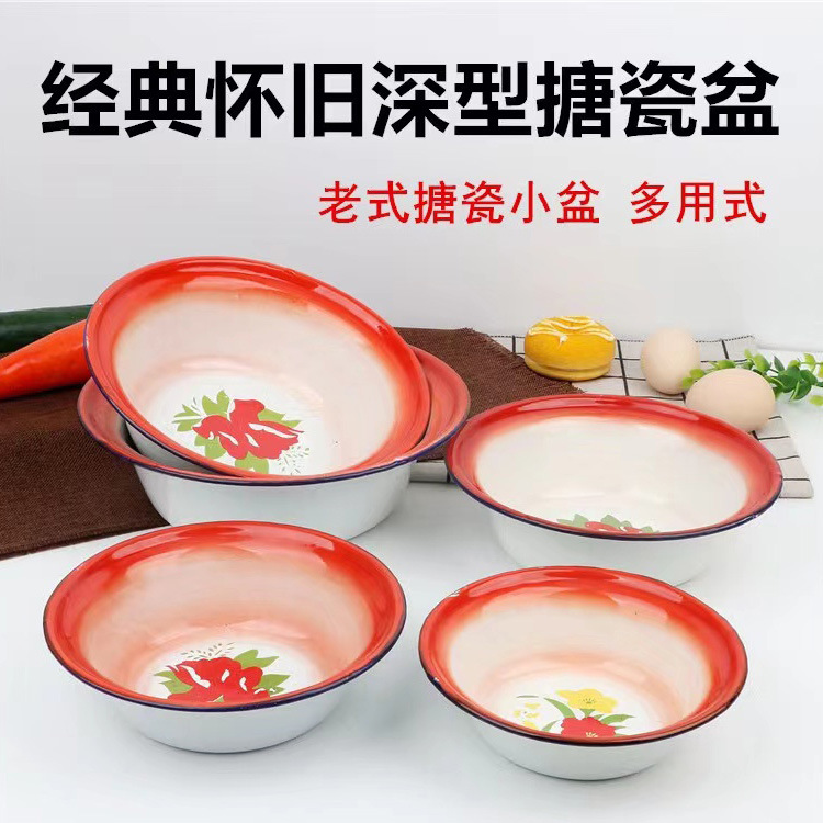 エナメル洗面器ノスタルジックなクラシックレトロ洗面器厚みのある縁起の良い如意スープボウル家庭用エナメル洗面器赤い結婚式の洗面器