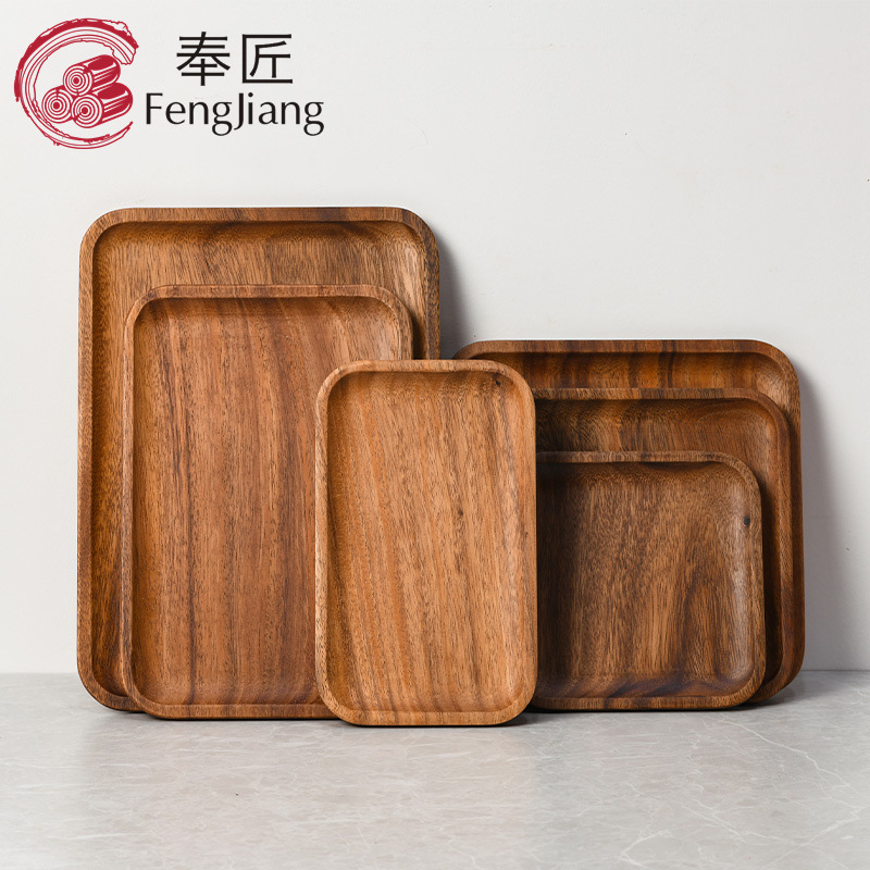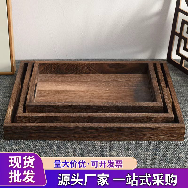 日式竹木托盘圆形木盘餐盘竹制茶盘餐厅酒店木质水果托盘茶壶托盘