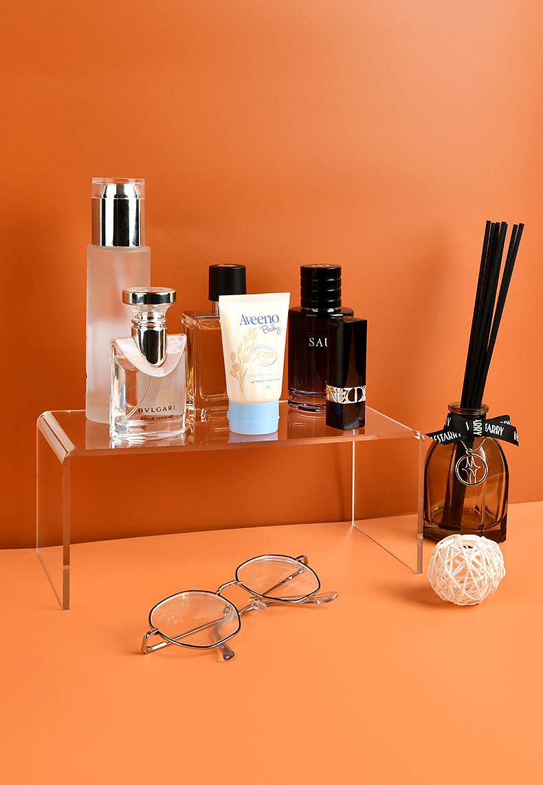 アクリル棚は透明で厚いu型展示棚のデスクトップに置いて、手で多層になって高くなっています。