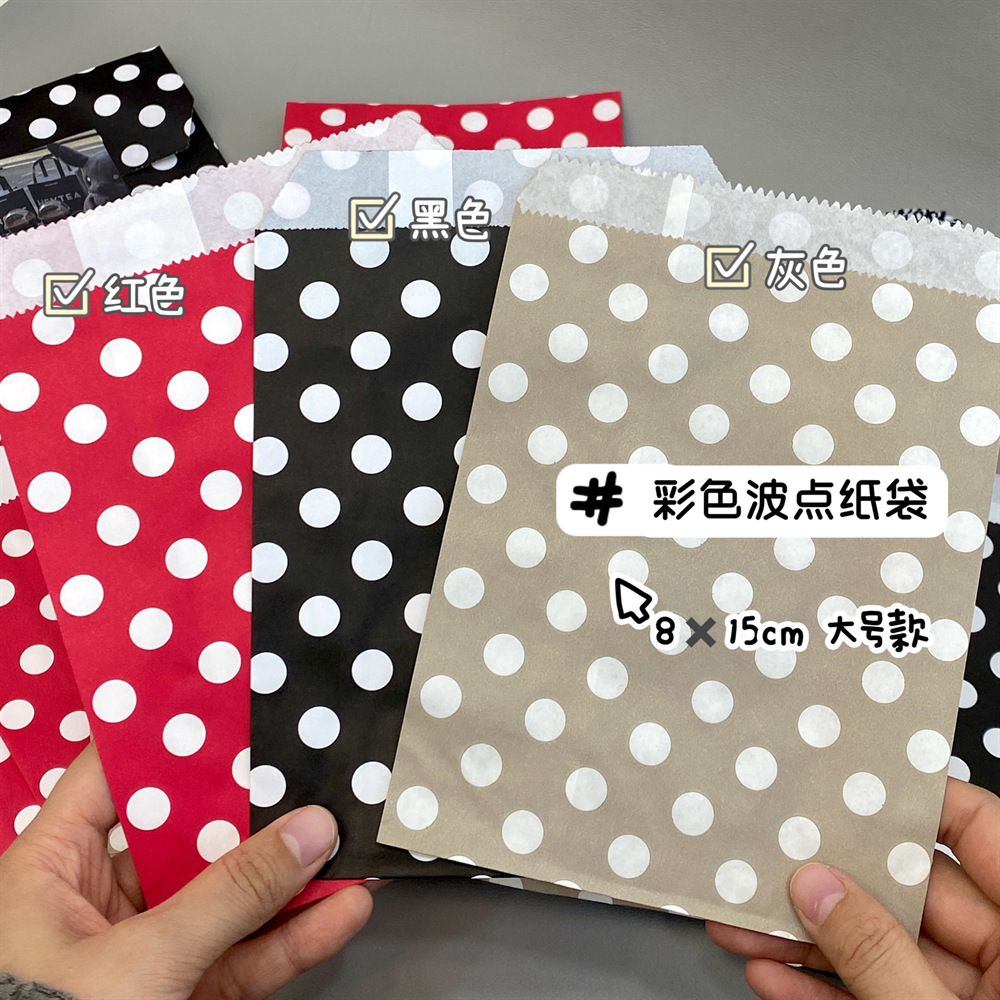 カラー波点紙袋高颜値ins風大容量自封袋小カードプレゼント包装丸点平口袋