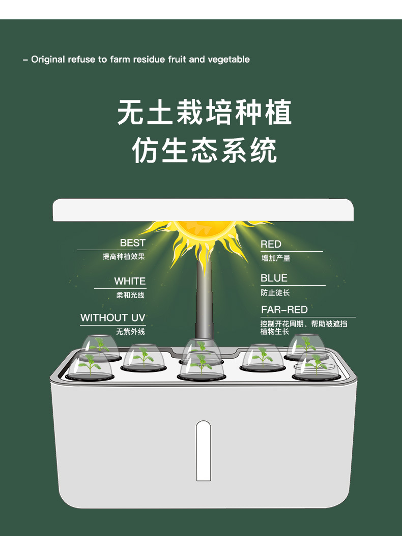 クロスボーダー知能水耕栽培機室内全スペクトル植物野菜補助灯無土栽培室内野菜栽培機