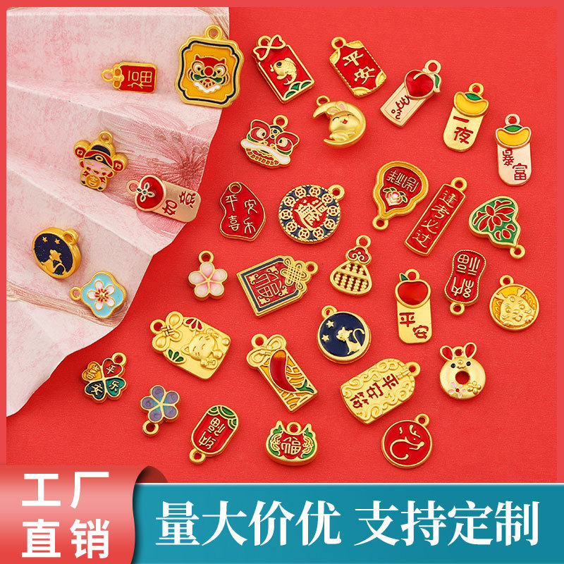 20種類の新年の目が覚めたライオンのペンダントを混ぜた中国風の合金福滴油diyアクセサリーのペンダントのキーホルダー材料