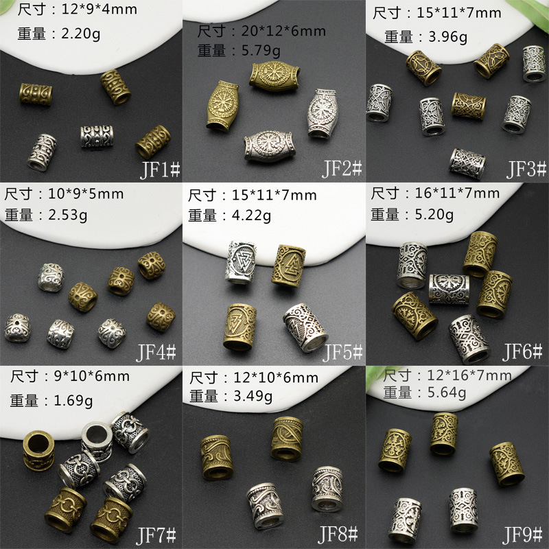古銀古銅維京文字記号文孔珠直管diy汚いお下げの合金アクセサリー部品