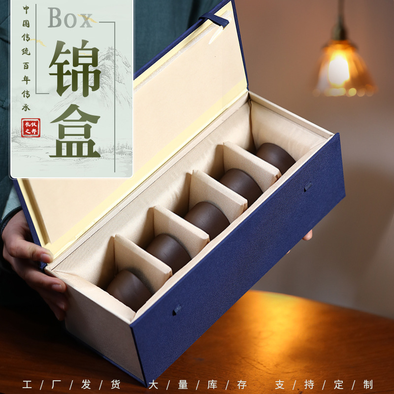 青布五杯錦箱、布製フリップトップ包装箱、紫砂壺茶器、ティーカップギフト収納ボックス
