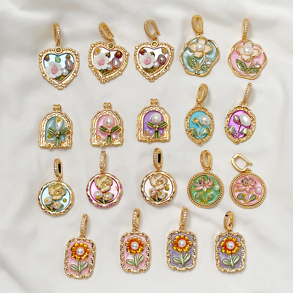 莫奈花园油画风法式花朵吊坠巴洛克花朵圆盘万能扣时尚项链挂件