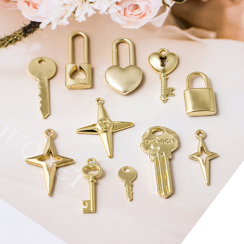 ファッション四芒星鍵ペンダントロック形ネックレスペンダントdiy手作りブレスレット鎖骨チェーンペンダント合金部品