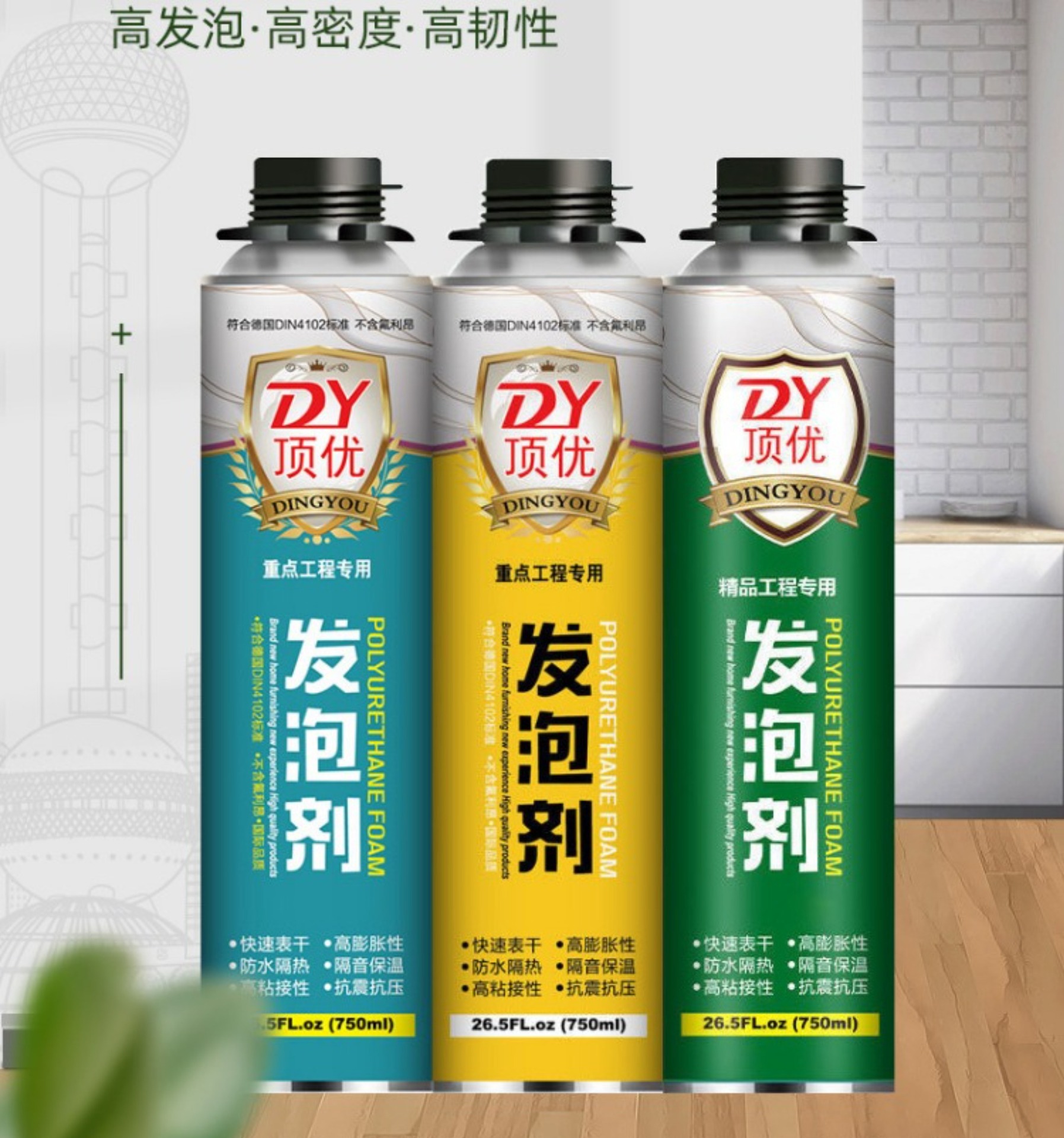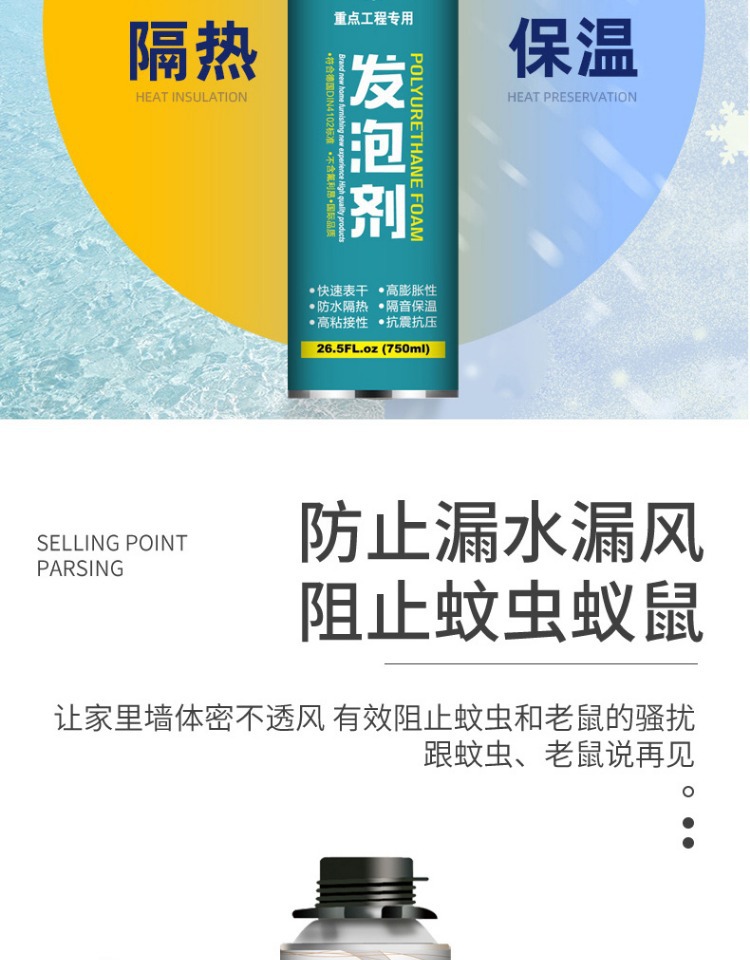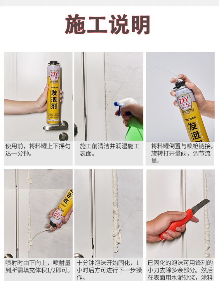 発泡剤、ポリウレタンフォームコーキング剤、ドア、窓、橋梁、パイプ用フォーム接着剤、自己消火性難燃性フォーム接着剤、防水