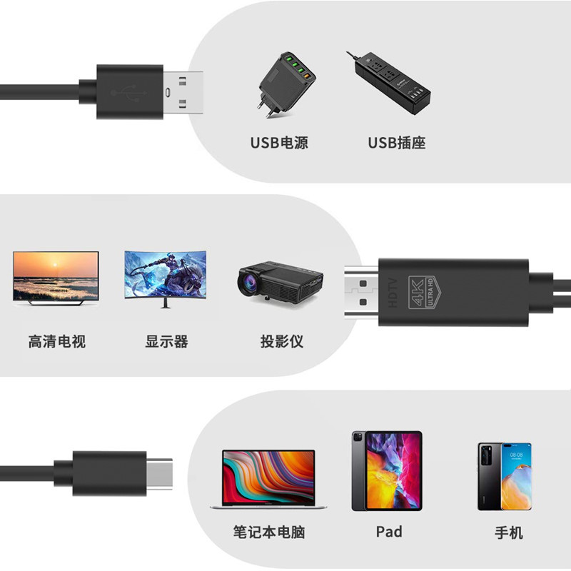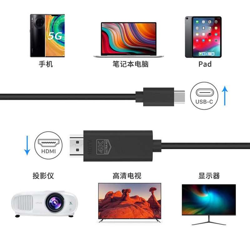 USB3.1 standard Type-c interface mobile phones, tablets, notebooks with multimedia monitors, projectors, audio and video synchronization on the same screen