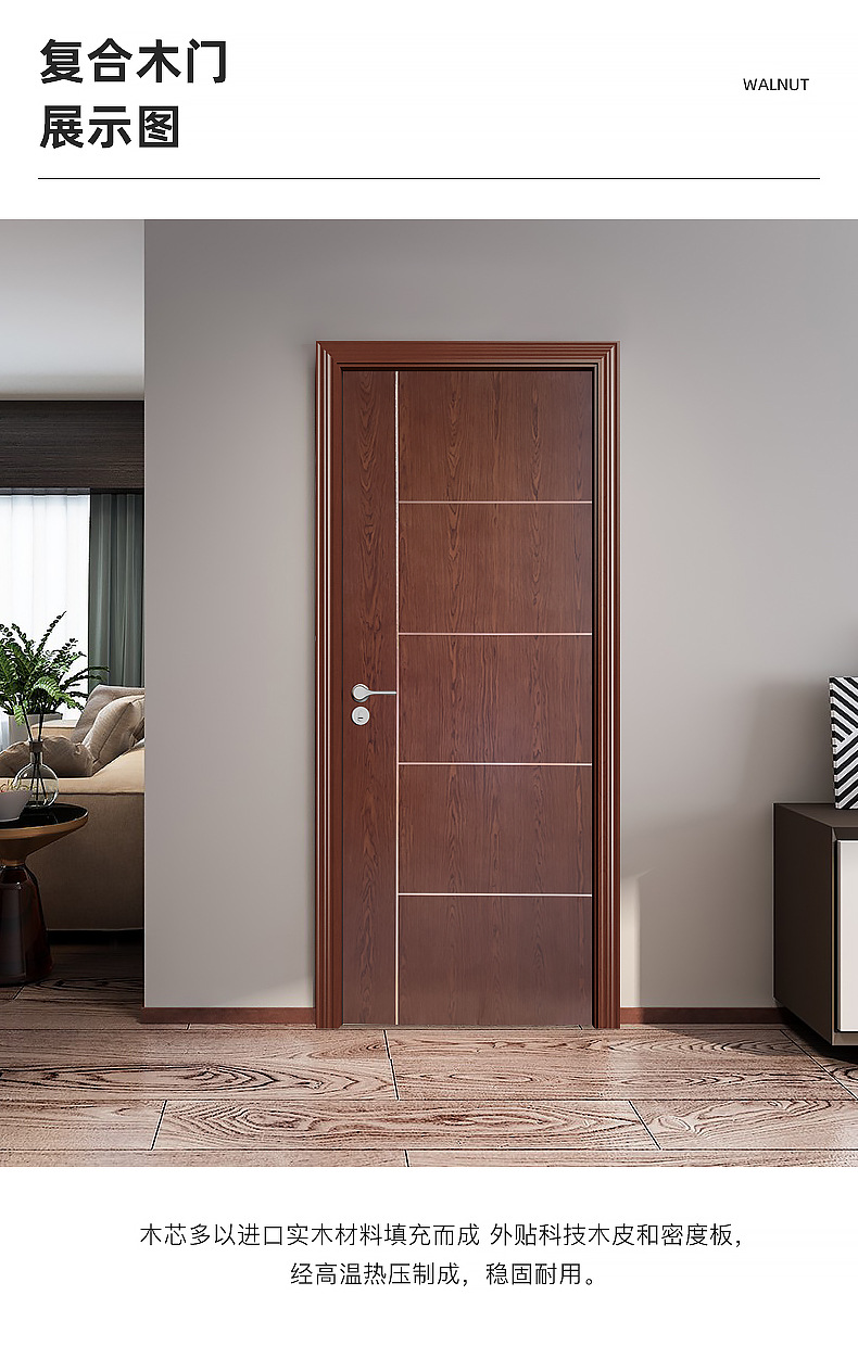 胡桃木複合実木門平開室内ドア寝室ドア防腐防湿環境保護塗装ドア部屋ドア卸売り