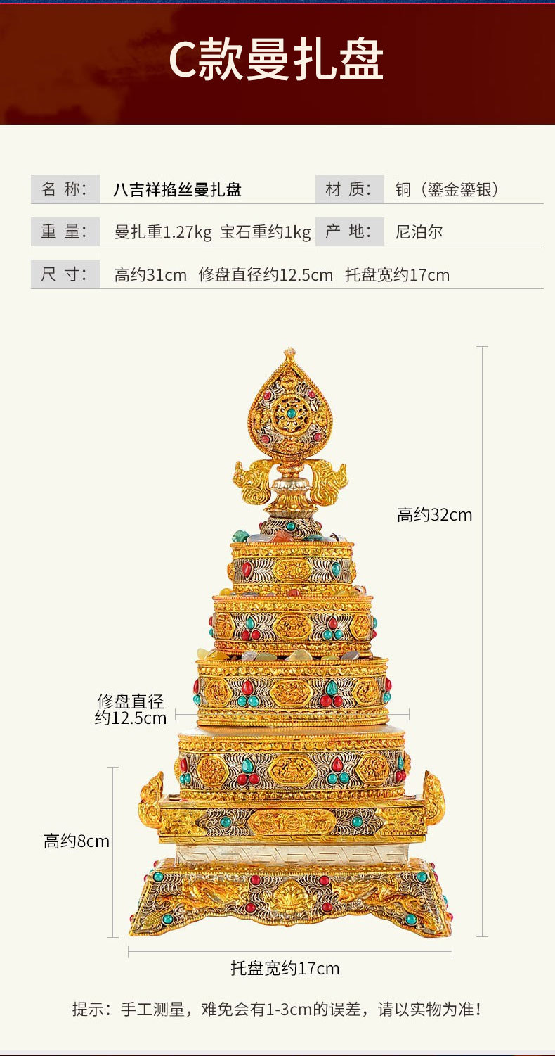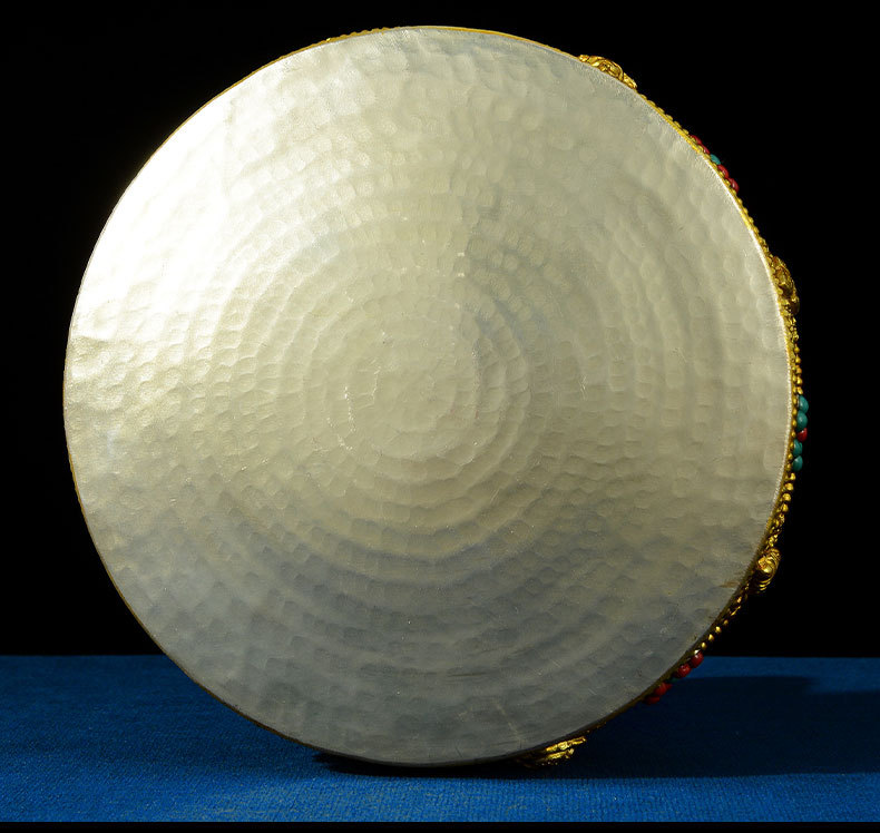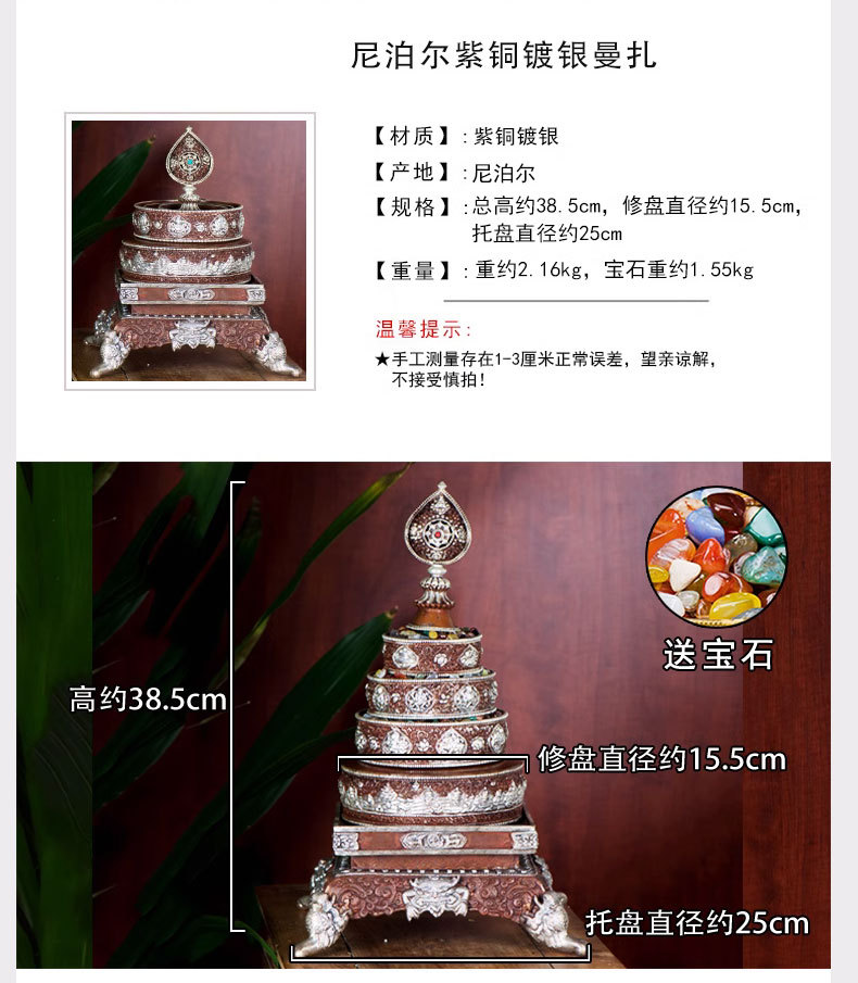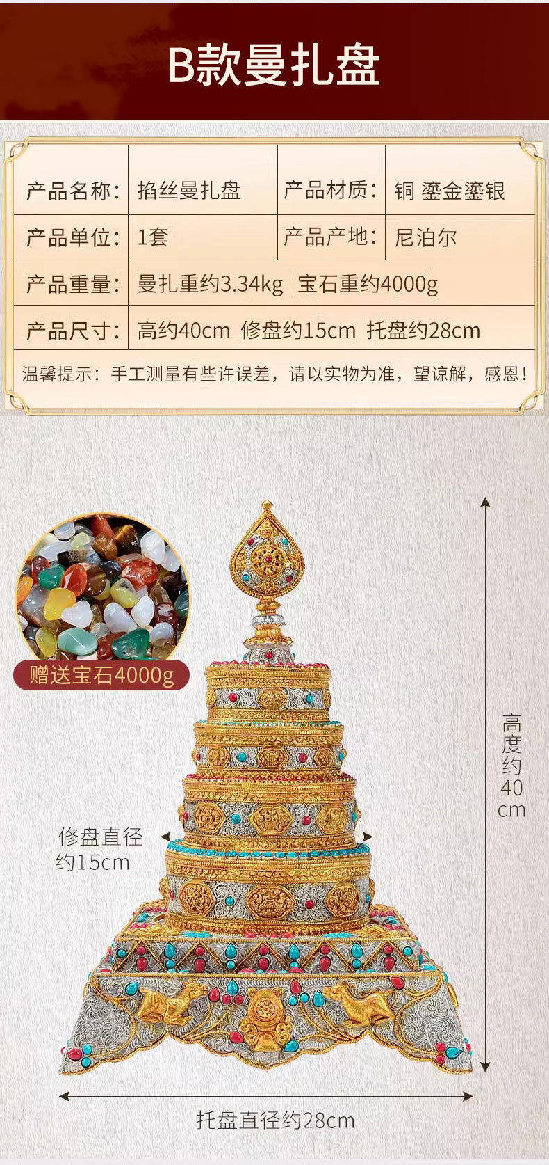 ネパールのマンザディスクの純度の高い銀の糸を絞めたマン茶の皿は宝石のマン茶の皿の大きいサイズの銅のマンザディスクをはめ込んでいます。
