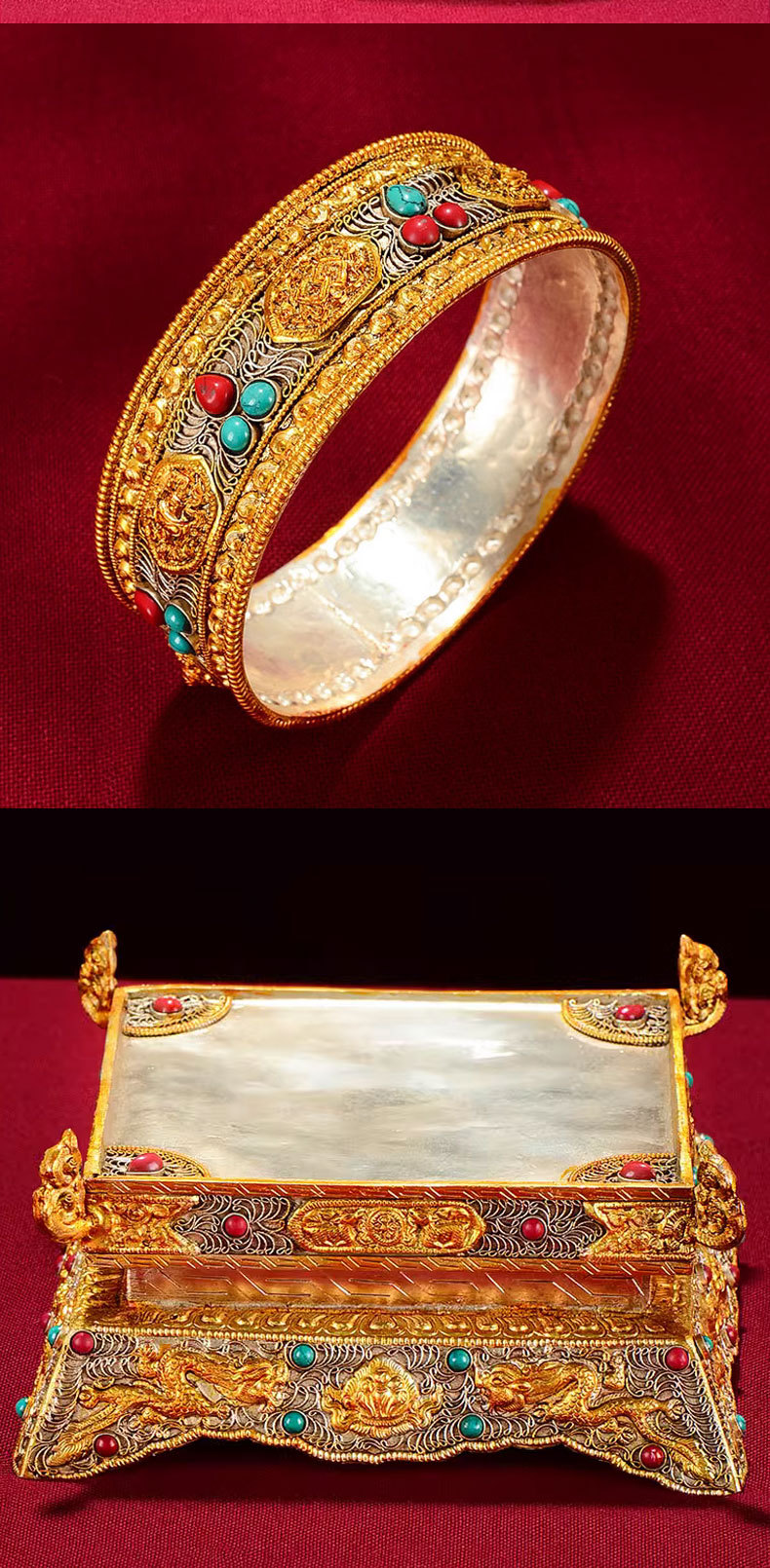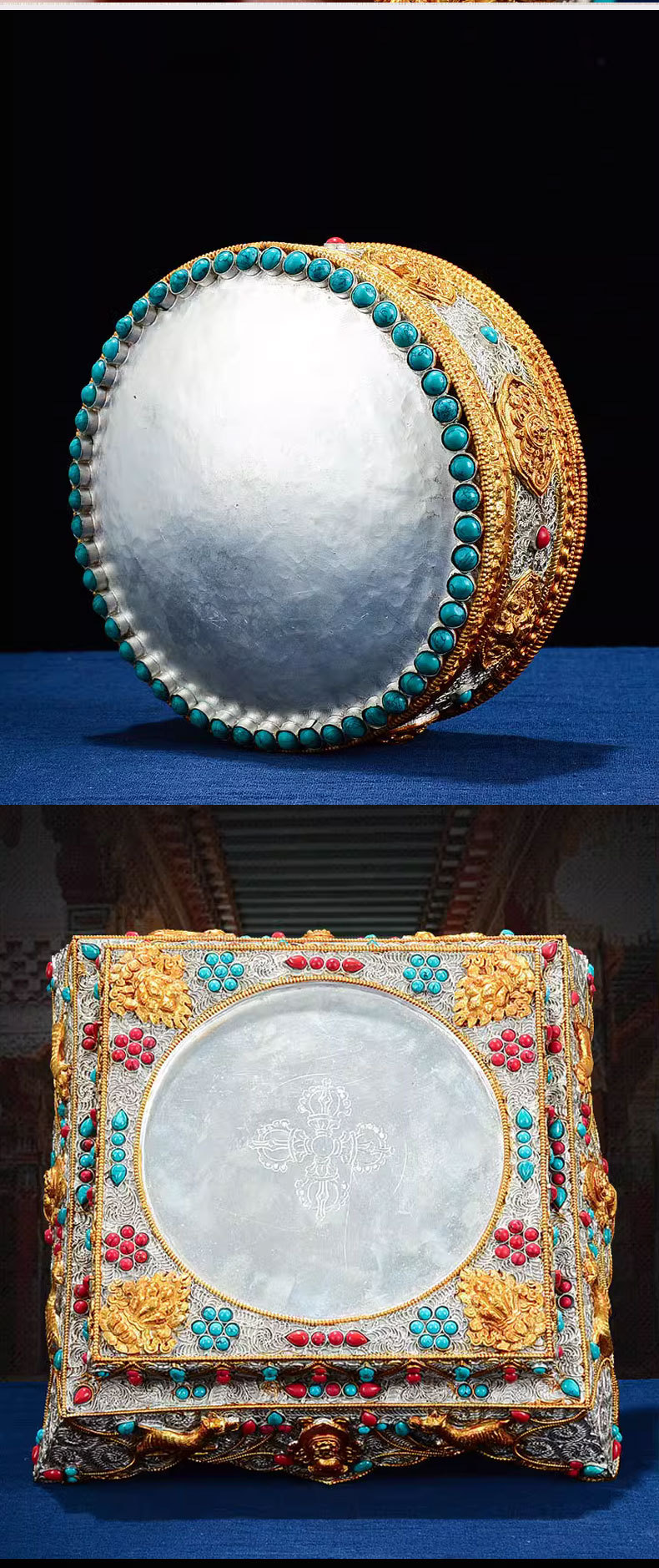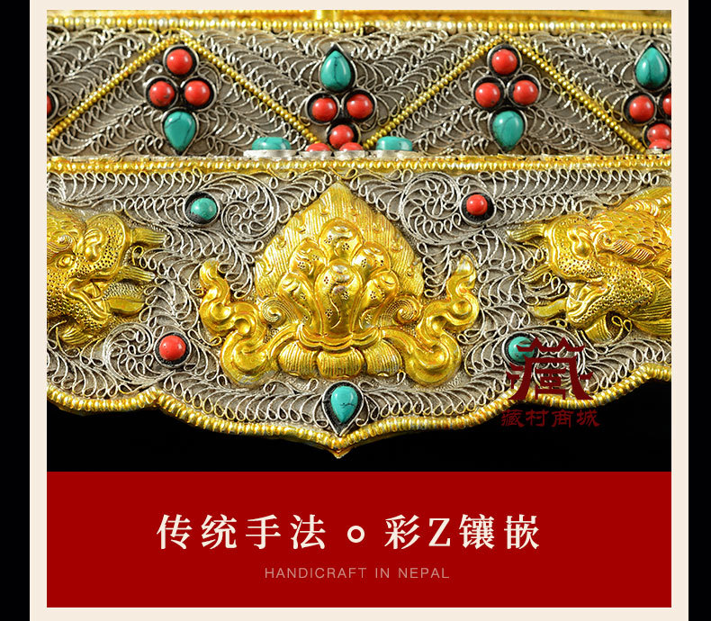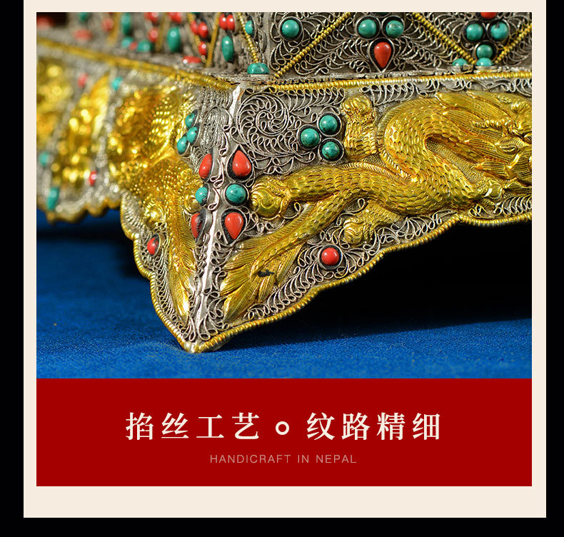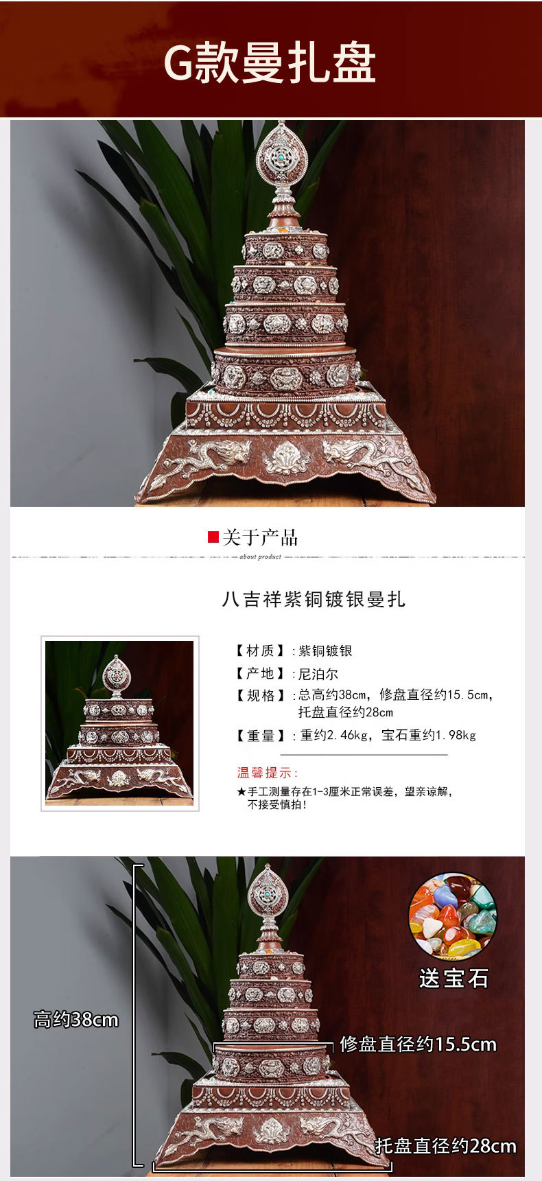 ネパールのマンザディスクの純度の高い銀の糸を絞めたマン茶の皿は宝石のマン茶の皿の大きいサイズの銅のマンザディスクをはめ込んでいます。